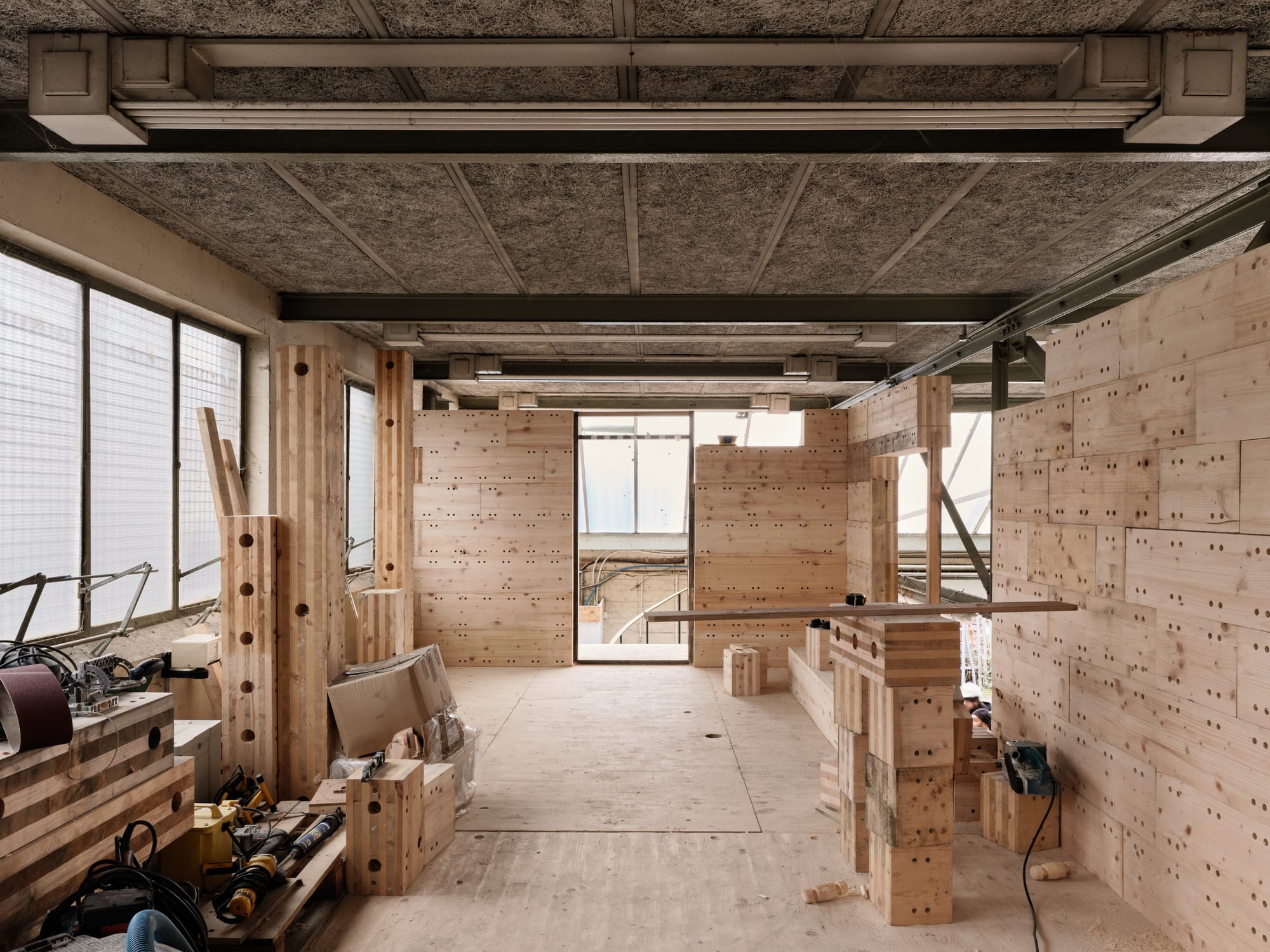 The retrofitted TPE building is made entirely from reclaimed materials and is designed for disassembly and future reuse | Pictures credit: Henry Woide